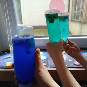 - sensoryczne buteleczki z kreatywnymi dodatkami,